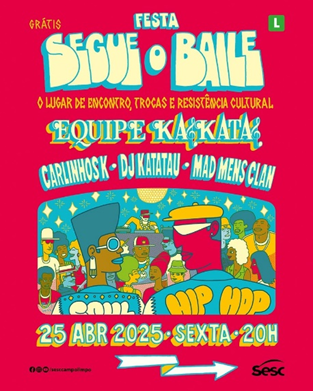 Buscando valorizar o contexto dos bailes a partir da perspectiva das Equipes, o ano de 2025 no Sesc Campo Limpo, tem sido marcado pela passagem de grandes equipes de baile, como a Zimbabwe, e na sequência, a Kaskatas, em abril, em uma homenagem aos pioneiros dessa história, que marcaram diferentes gerações, e que continuam na ativa.