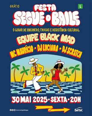O Projeto Segue O Baile, que desde julho de 2023 agita a pista de dança do Sesc Campo Limpo, e vem cada vez mais se tornando uma homenagem em memória aos Bailes Black, especialmente nas décadas de 1970 e 80, traz no dia 30 de maio de 2025, a terceira equipe de baile da atual temporada: a Equipe Black Mad, comandada pelo MC Mauricio Black Mad e com os DJ´s Luciana e Scratch, das 20h às 21h30.
